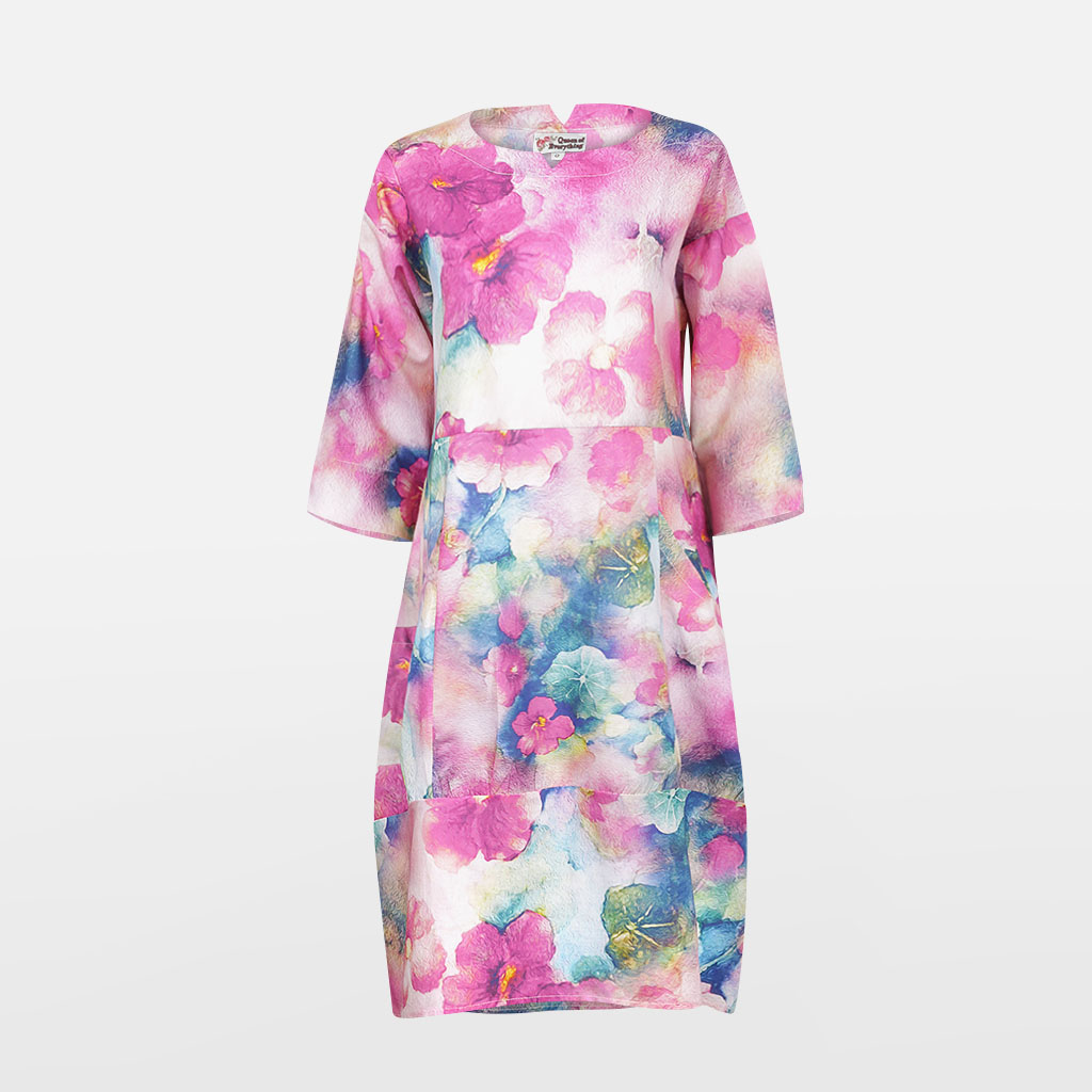 Brighten up your wardrobe with the Lily Dress in our captivating “Summer Delight” linen print.