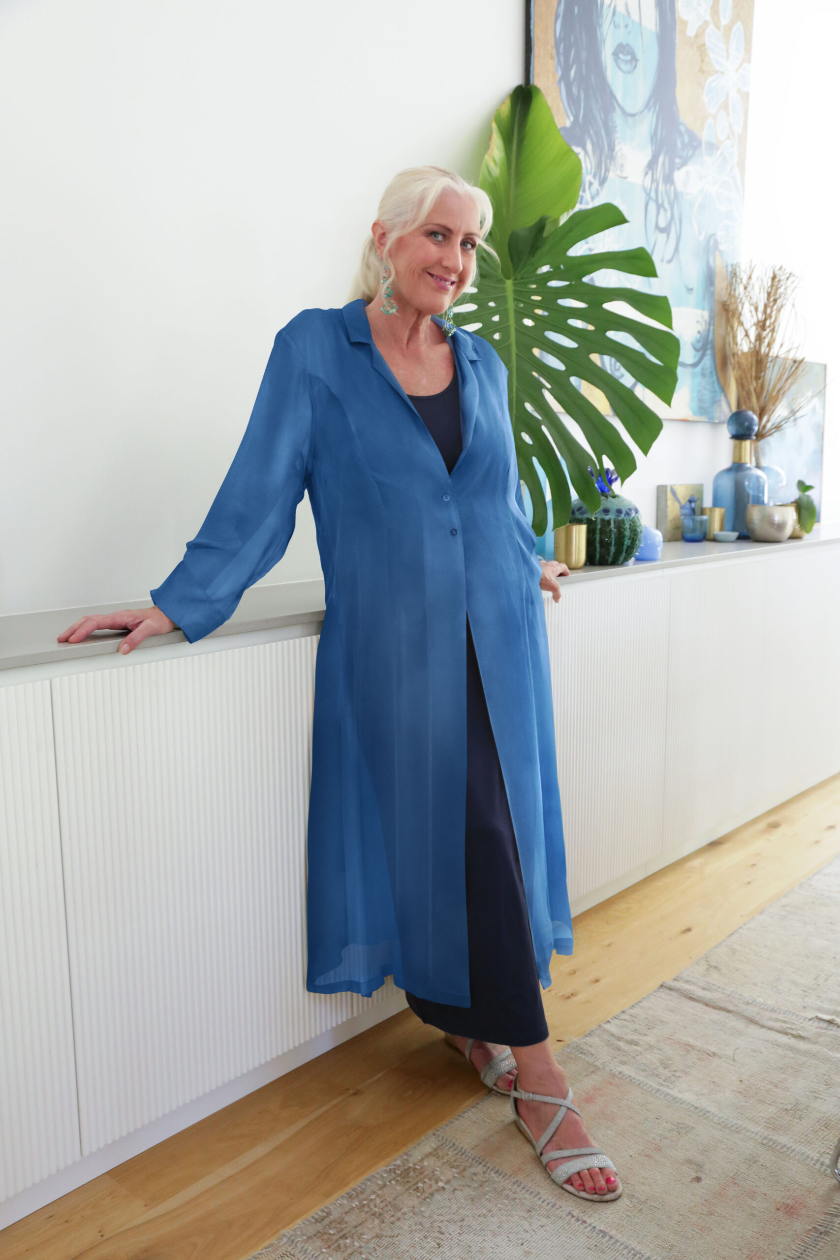 Teal Silk Duster Coat