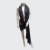 This fabric features a deep, rich charcoal hue with a subtle crinkled texture that adds depth and dimension. Its semi-sheer quality allows for a delicate interplay of light and shadow, enhancing its elegant appeal. The understated pattern and flowing drape make it a versatile choice, perfect for creating sophisticated scarves, shawls, or sarongs. Ideal for those seeking a timeless and refined fabric for their next project.