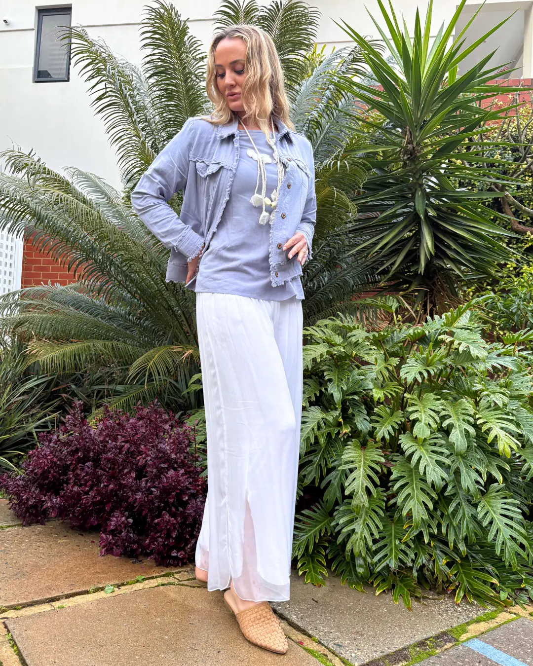 Soft, dreamy, and endlessly versatile, this beautiful hue has just arrived in our signature linen collection. It pairs perfectly with crisp whites for an effortless, chic look that feels both timeless and fresh.