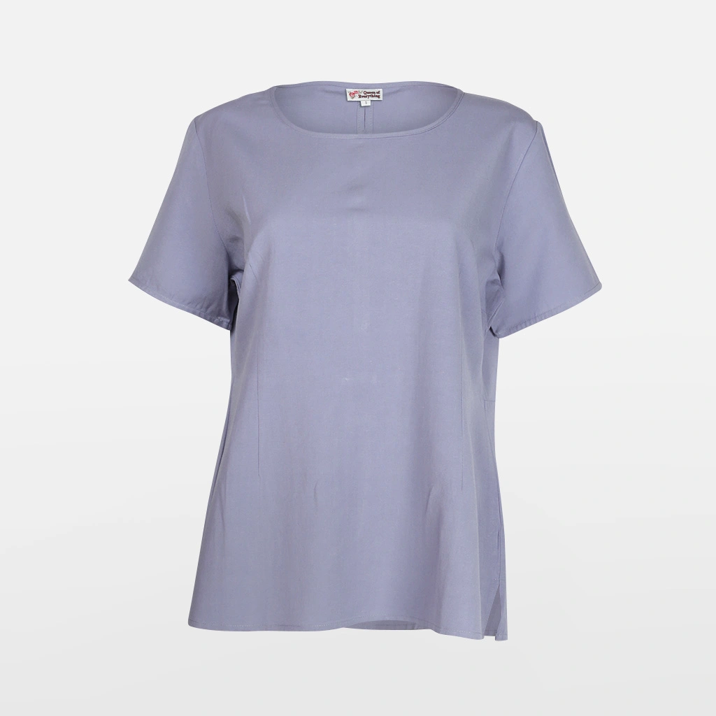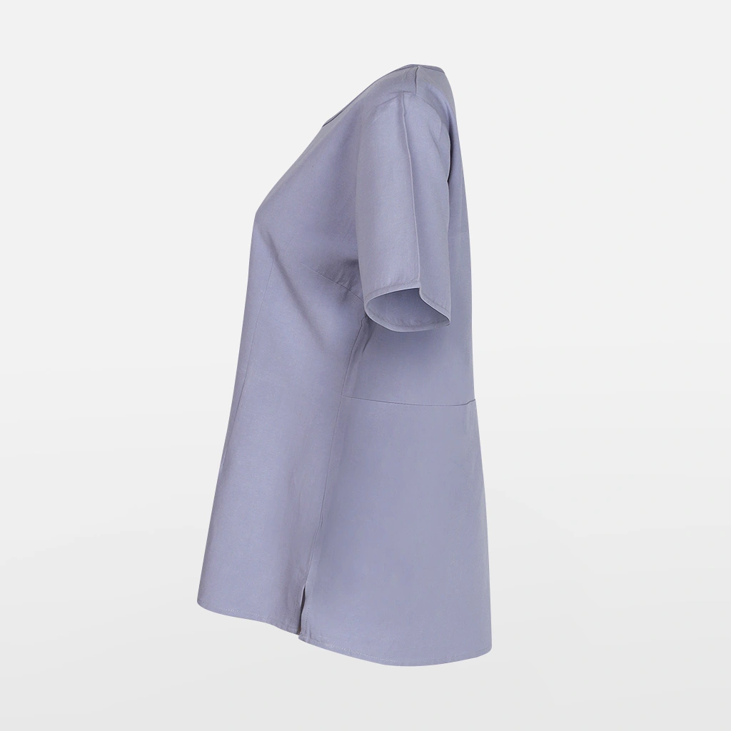 Meet your ultimate summer top! The Periwinkle linen/cotton blend top with a round neck, short sleeves, and a trendy high-low hem, this gem covers you perfectly in the front and adds a fab stitch detail in the back. Say goodbye to clingy fits!