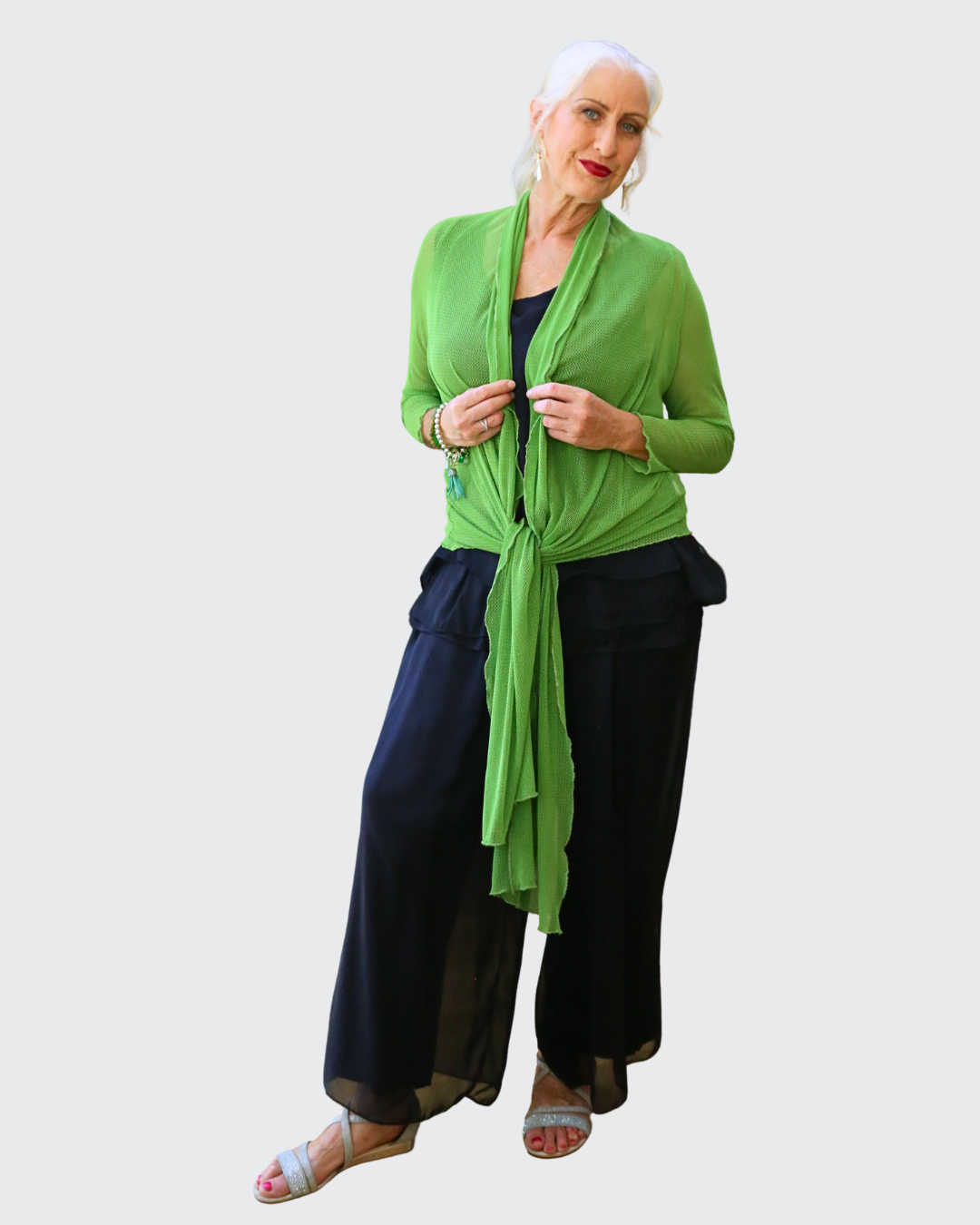 This Cardi is a perfect summer transition layer piece in our NEW one size for all – our stretch net jacket.